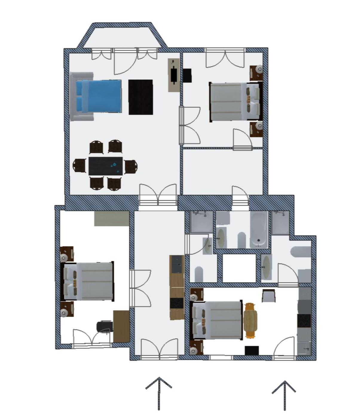 The spacious apartment with a balcony and city views has 3 bedrooms, a living room, a flat-screen TV, an equipped kitchen with a dishwasher and an oven, and 3 bathrooms with a bath. Towels and bed linen are available in the apartment. For added privacy, the accommodation features a private entrance.