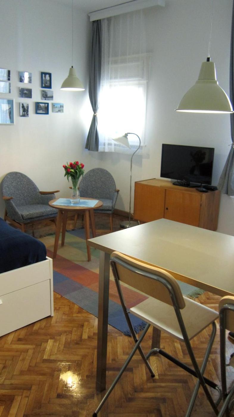 Studio Apartment. Featuring a private entrance, this air-conditioned apartment comprises a kitchen, 1 bedroom and 1 bathroom with a shower and a bidet. Meals can be prepared in the kitchen, which comes with a stovetop, a refrigerator, a dishwasher and kitchenware. The apartment provides a flat-screen TV with satellite channels, a washing machine, a coffee machine, a seating area as well as a quiet street view. The unit offers 1 bed.