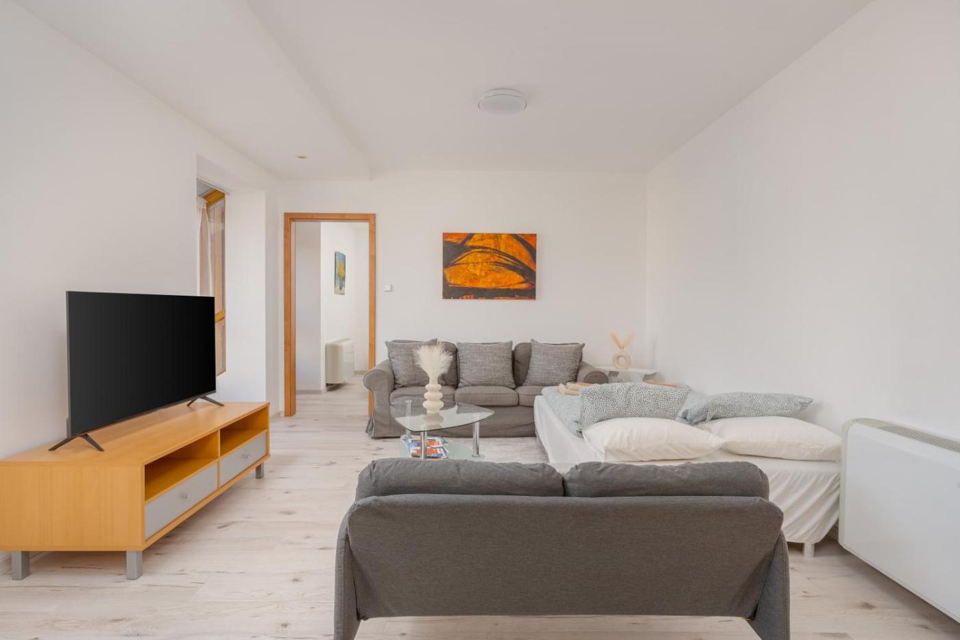 Two-Bedroom Apartment. This spacious apartment comprises 1 living room, 2 separate bedrooms and 1 bathroom with a bath and a bidet. In the well-fitted kitchen, guests will find a refrigerator, a dishwasher, an oven and a microwave. The apartment provides a flat-screen TV, a washing machine, a tea and coffee maker, a dining area as well as city views. The unit offers 3 beds.