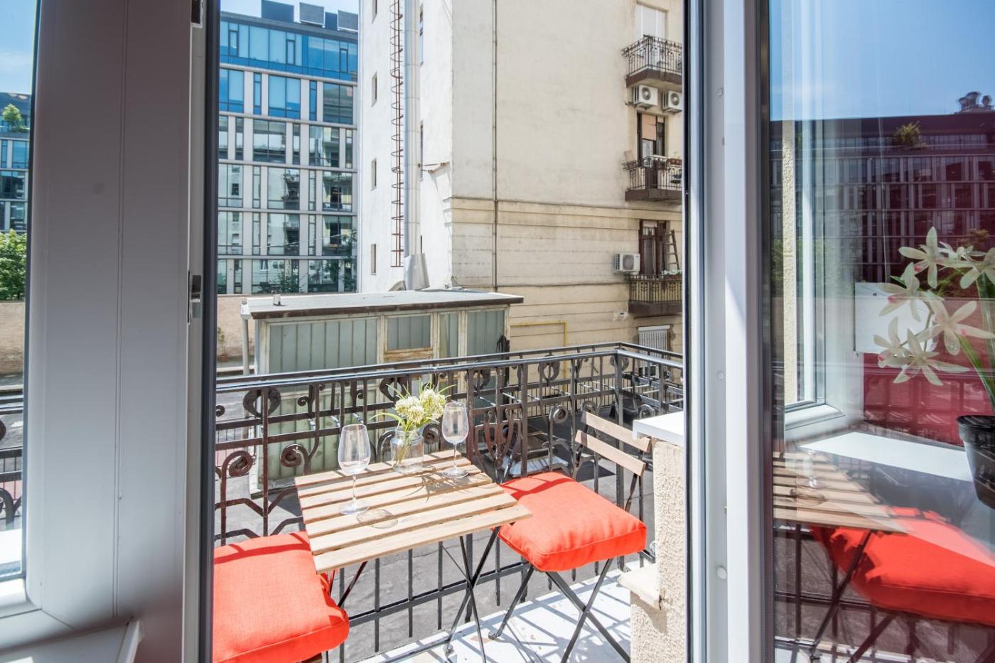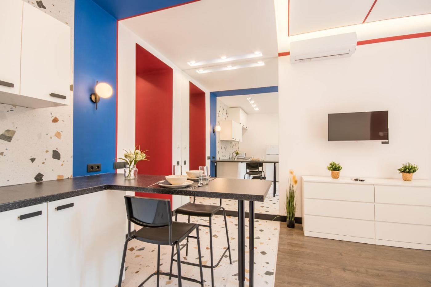 Deluxe Apartment. Boasting a private entrance, this air-conditioned apartment features a kitchen, 1 bedroom and 1 bathroom with a bath or a shower and a hairdryer. In the well-equipped kitchen, guests will find a stovetop, a refrigerator, kitchenware and an oven. The apartment has parquet floors, a seating area with a flat-screen TV, soundproof walls, a coffee machine as well as city views. The unit has 1 bed.