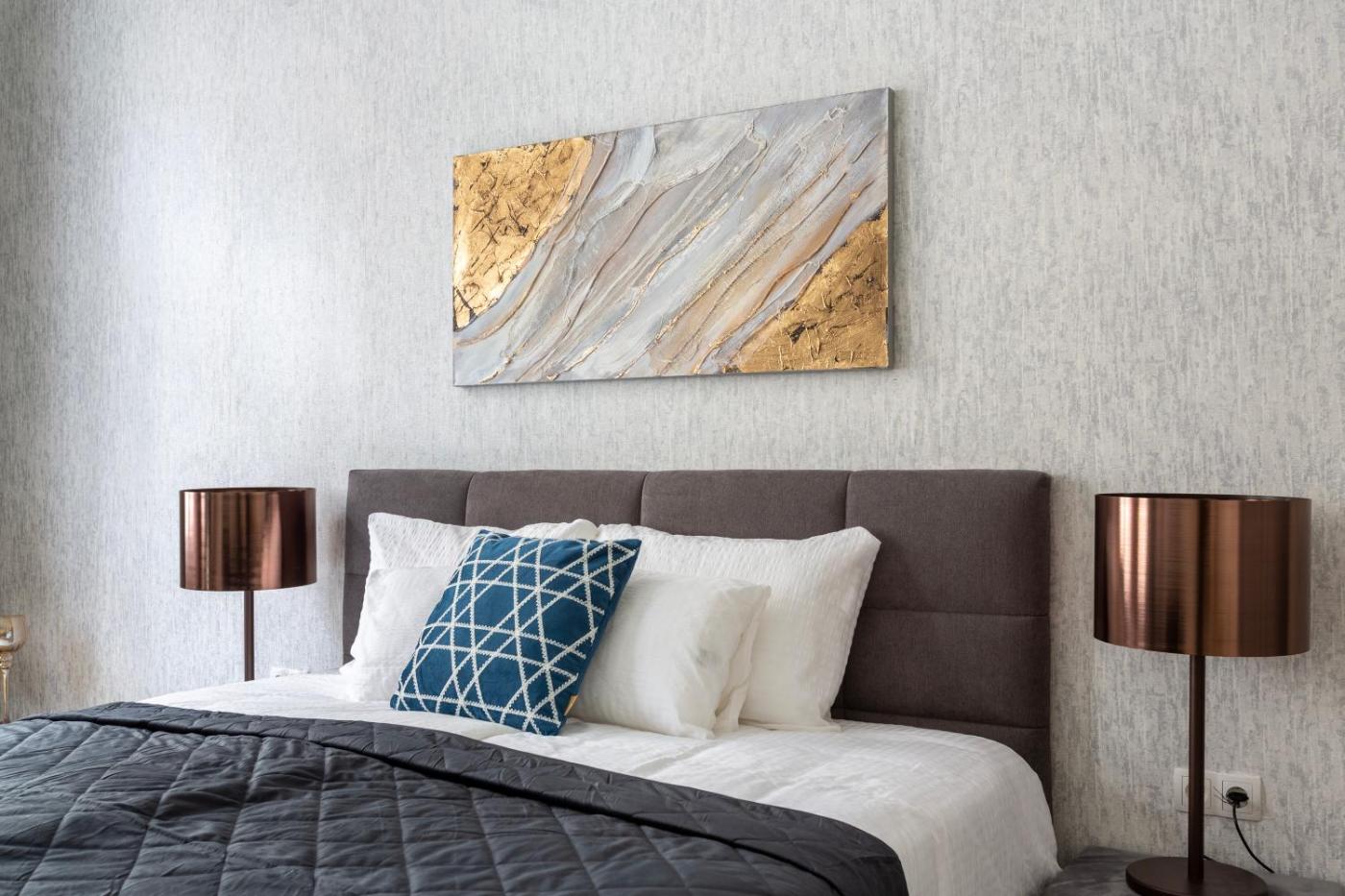 Deluxe Apartment. Boasting a private entrance, this air-conditioned apartment includes 1 living room, 1 separate bedroom and 1 bathroom with a shower and a hairdryer. Guests can make meals in the kitchen that is fitted with a stovetop, a refrigerator, kitchenware and an oven. The apartment has parquet floors, a seating area with a flat-screen TV, soundproof walls, a dining area as well as a quiet street view. The unit has 1 bed.
