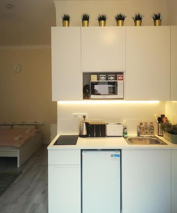 Studio Apartment. Guests can make meals in the kitchen that comes with a refrigerator, kitchenware, a microwave and a toaster. The studio provides a washing machine and heating, as well as a private bathroom featuring a hairdryer. The unit offers 2 beds.