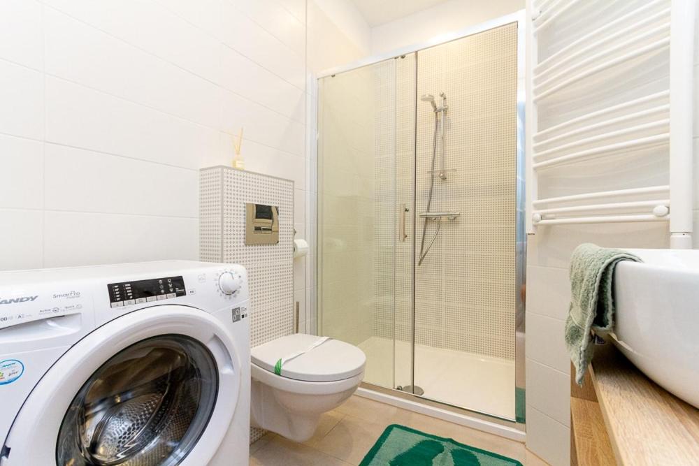 One-Bedroom Apartment. Featuring a private entrance, this air-conditioned apartment consists of 1 living room, 1 separate bedroom and 1 bathroom with a shower. In the well-fitted kitchen, guests will find a stovetop, a refrigerator, kitchenware and an oven. The apartment is equipped with a washing machine, a tea and coffee maker, a wardrobe as well as a sofa. The unit offers 2 beds.