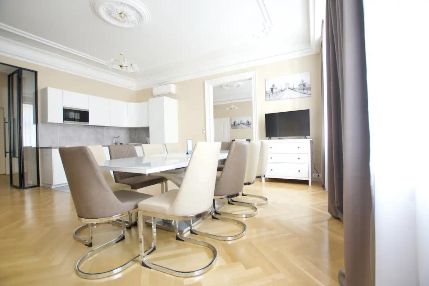 Three-Bedroom Apartment. The apartments kitchen is available for cooking and storing food. The spacious apartment provides air conditioning, a washing machine, heating and a flat-screen TV. The unit offers 6 beds.