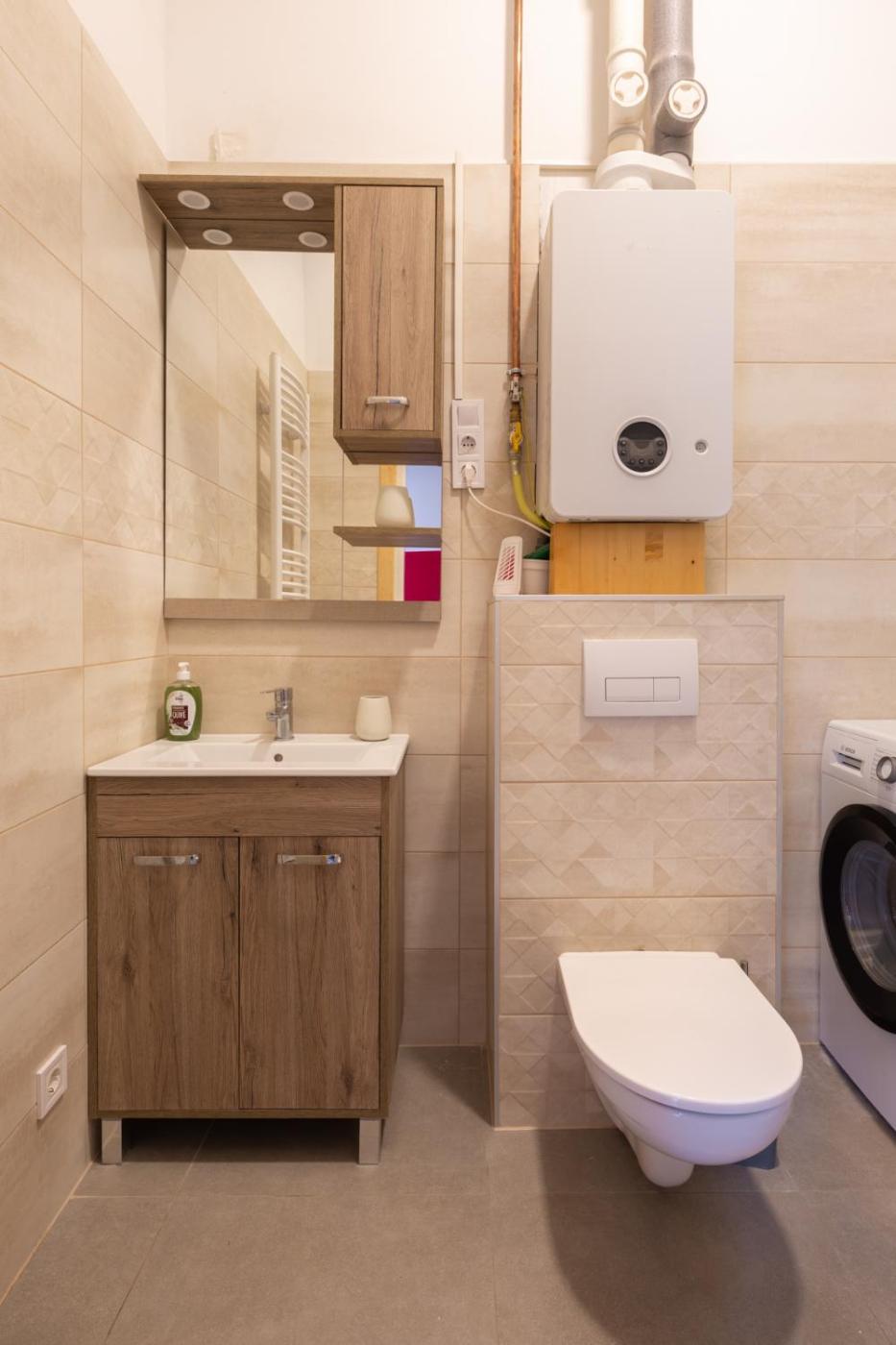 Two-Bedroom Apartment. The apartments kitchen is available for cooking and storing food. The spacious apartment features a washing machine, heating and a balcony. The unit has 3 beds.
