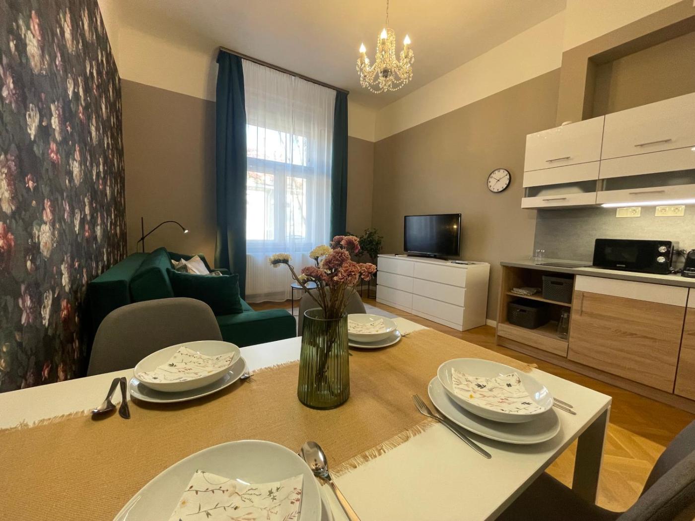 Deluxe Apartment. Featuring a private entrance, this air-conditioned apartment consists of a kitchen, 1 bedroom and 1 bathroom with a shower and a hairdryer. Guests can make meals in the kitchen that is equipped with a stovetop, a refrigerator, a dishwasher and kitchenware. This apartment features soundproof walls, flat-screen TV with cable channels, ancourtyard view, as well as chocolate for guests. The unit offers 2 beds. ;