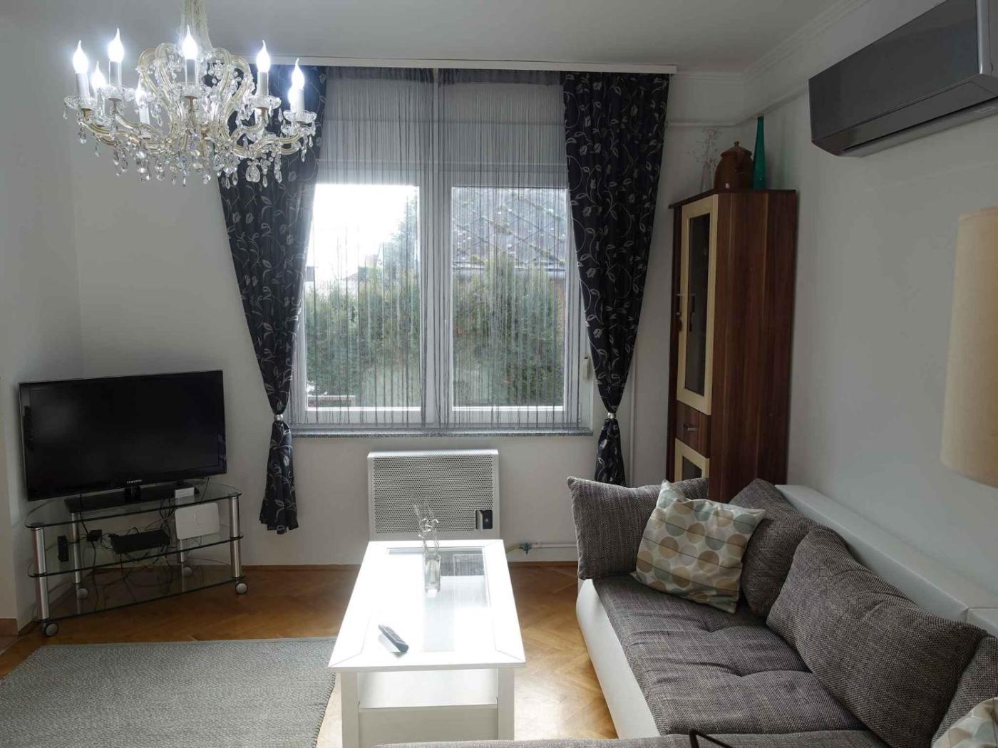 Apartment. This spacious apartment comprises 1 living room, 2 separate bedrooms and 2 bathrooms with a bath and a shower. Guests will find a stovetop, a refrigerator, a dishwasher and an oven in the kitchen. The apartment also provides guests with a barbecue. This apartment features a washing machine, a tea and coffee maker, a TV with cable channels and outdoor furniture. The unit offers 5 beds.