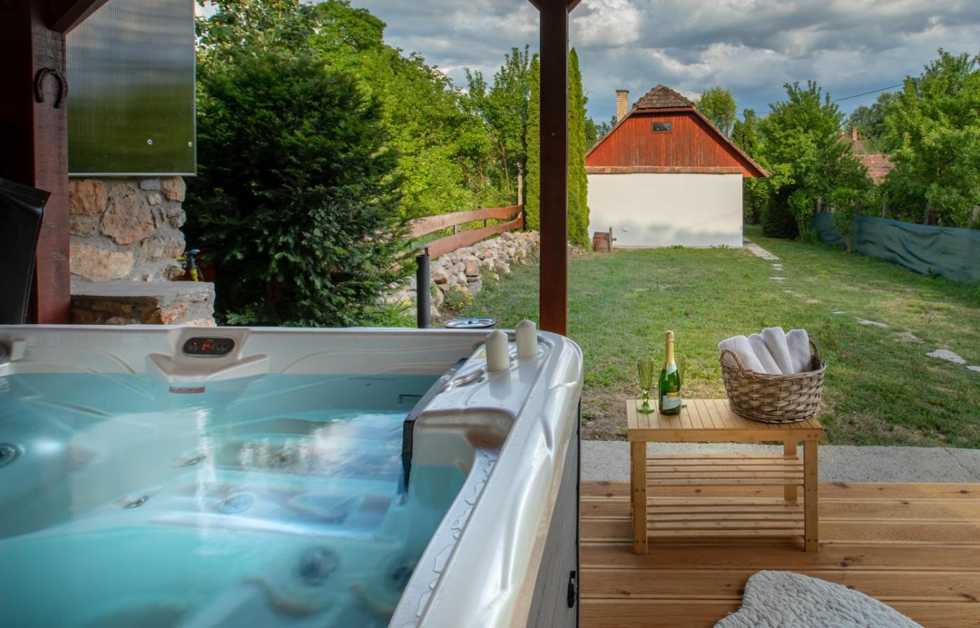 Two-Bedroom Apartment. Guests will have a special experience as this apartment offers a hot tub and a spa bath. Featuring 2 bedrooms, this spacious apartment offers 2 bathrooms with a shower, a seating area and terraceyou can relax. Guests will find a stovetop, kitchenware, an oven and a microwave in the fully equipped kitchen. The apartment also has a barbecue. Among the room amenities are a coffee machine, a dining area and heating as well as garden views. The unit has 6 beds.