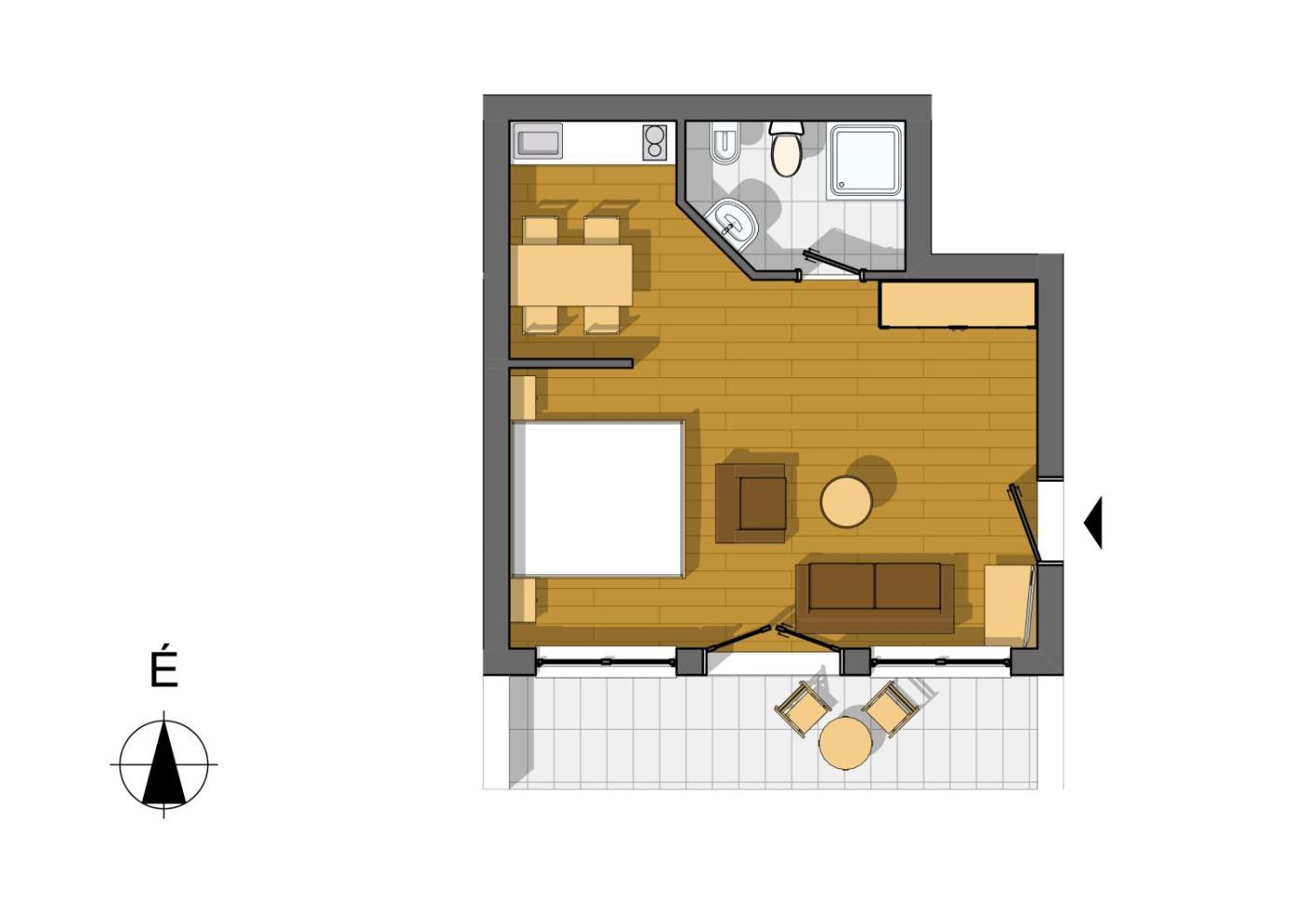 One-Bedroom Apartment. Boasting a private entrance, this air-conditioned apartment features 1 living room, 1 separate bedroom and 1 bathroom with a shower and a hairdryer. The well-fitted kitchen has a stovetop, a refrigerator, kitchenware and a microwave. Featuring a terrace with garden views, this apartment also features a tea and coffee maker and a flat-screen TV with cable channels. The unit has 1 bed. ;